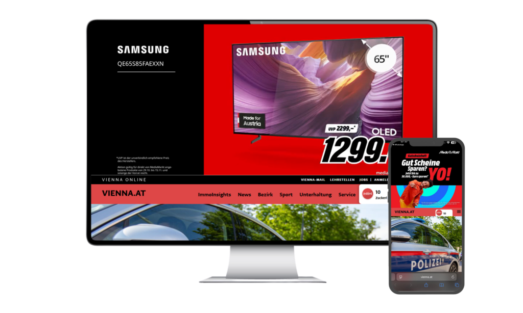 Als einer der ersten Werbekunden in Österreich setzte MediaMarkt gemeinsam mit austria.com/plus auf das neue High-Impact-Format „Dynamic Head“. Im Kampagnenzeitraum rund um den Black Friday erzielte das Werbemittel eine mehr als zehnmal höhere Click-Through-Rate (CTR) als Standardformate und deutlich überdurchschnittliche Werte bei Sichtbarkeit und View Time.